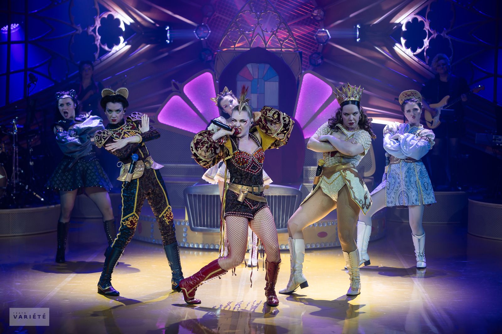 Reżyserce Katarzynie Chlebny udało się sprawić, że przez cały czas na scenie coś się dzieje, że karuzela kręci się szybko i intensywnie. Piosenki w przekładzie Jacka Mikołajczyka brzmią dobrze i choć całość nie skleja się w jakąś osiową fabułę, tylko brnie od opowieści do opowieści, wszystko wygląda spójnie i pasuje do konwencji. Warto pochwalić szaloną scenografię i kostiumy, które także znakomicie wpasowały się w klimat autorstwa Łukasza Błażejewskiego (te świecące staniki to majstersztyk!) oraz znakomitą reżyserię światła, za którą odpowiadał Wojciech Wąs. W kilku momentach naprawdę światło robiło kapitalną robotę. Z kolei choreografia Barbary Olech, choć energetyczna i dość widowiskowa, nie była szczególnie oryginalna i poza kilkoma oczywistymi gestami (nawiązującymi do ścięcia) nie miałem wrażenia, by starała się budować jakieś dodatkowe piętro znaczeń. Była po prostu dobrą choreografią koncertową, którą spokojnie mogliby zatańczyć tancerze na kilku innych koncertach gwiazd i do kilku innych utworów. Z drugiej strony - gdyby była zbyt skomplikowana i wyszukana utrudniłaby śpiewanie, które przecież jest tutaj w centrum. Mimo wszystko mam jednak w tym względzie chyba najbardziej uzasadniony niedosyt.