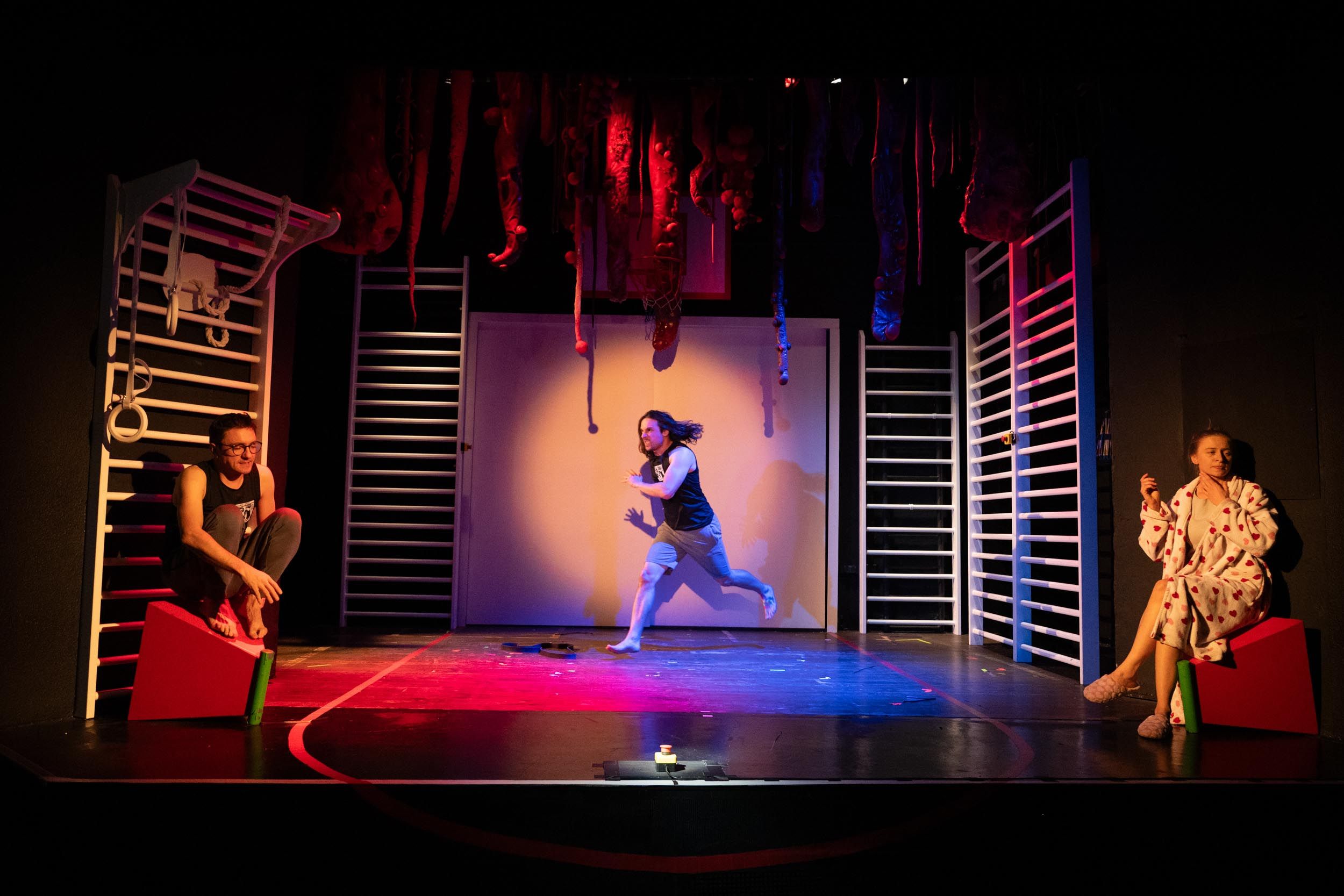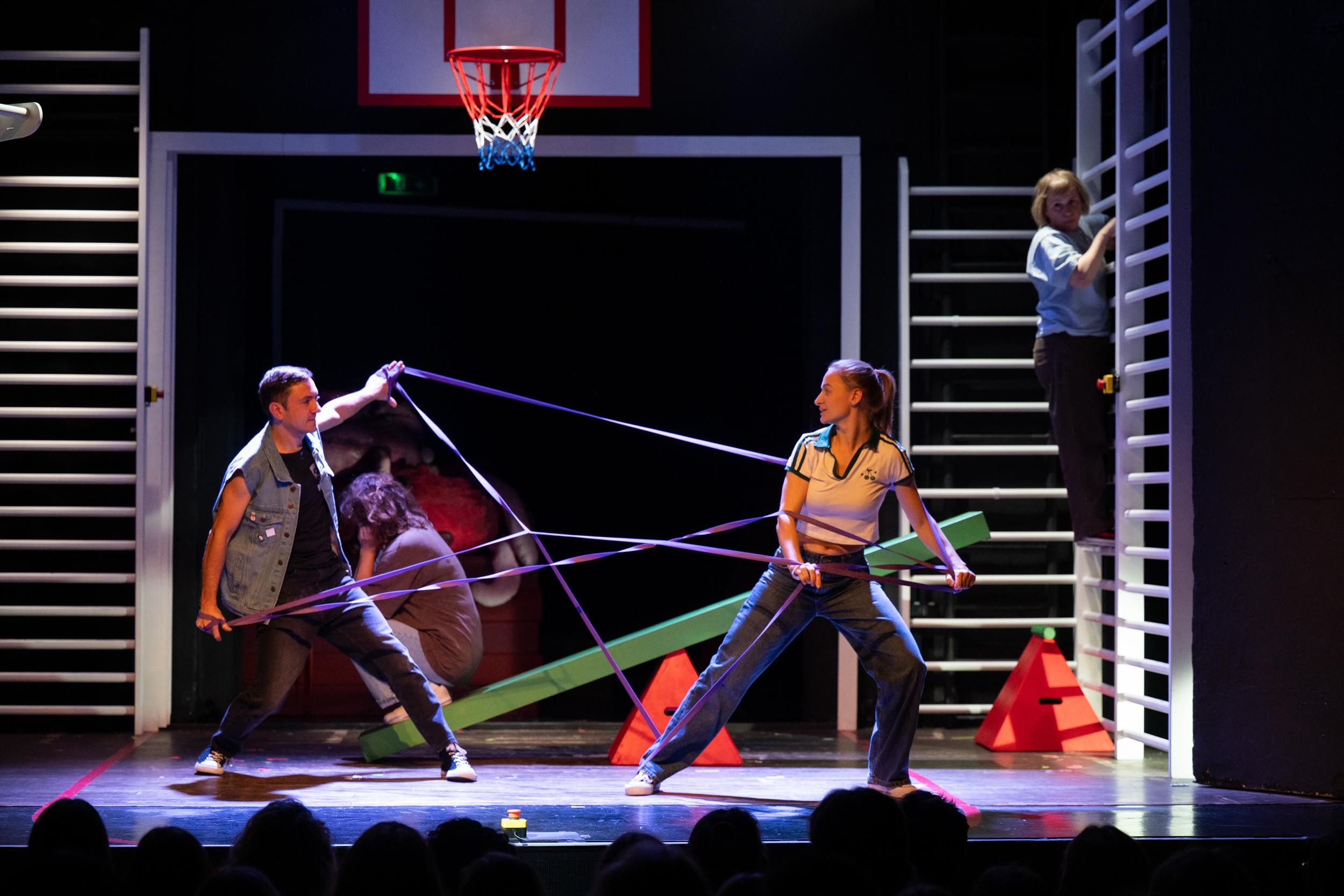 Świetnie sprawdza się zaprojektowana przez Anitę Piotrowską wielofunkcyjna scenografia, przenosząca nas na salę gimnastyczną z symboliczną równoważnią - huśtawką, na której zmuszeni są balansować bohaterowie. Wrażenie robi także dopracowany i przemyślany ruch sceniczny i choreografia (autorstwa Marty Bury) oraz muzyka Igi Eckert.