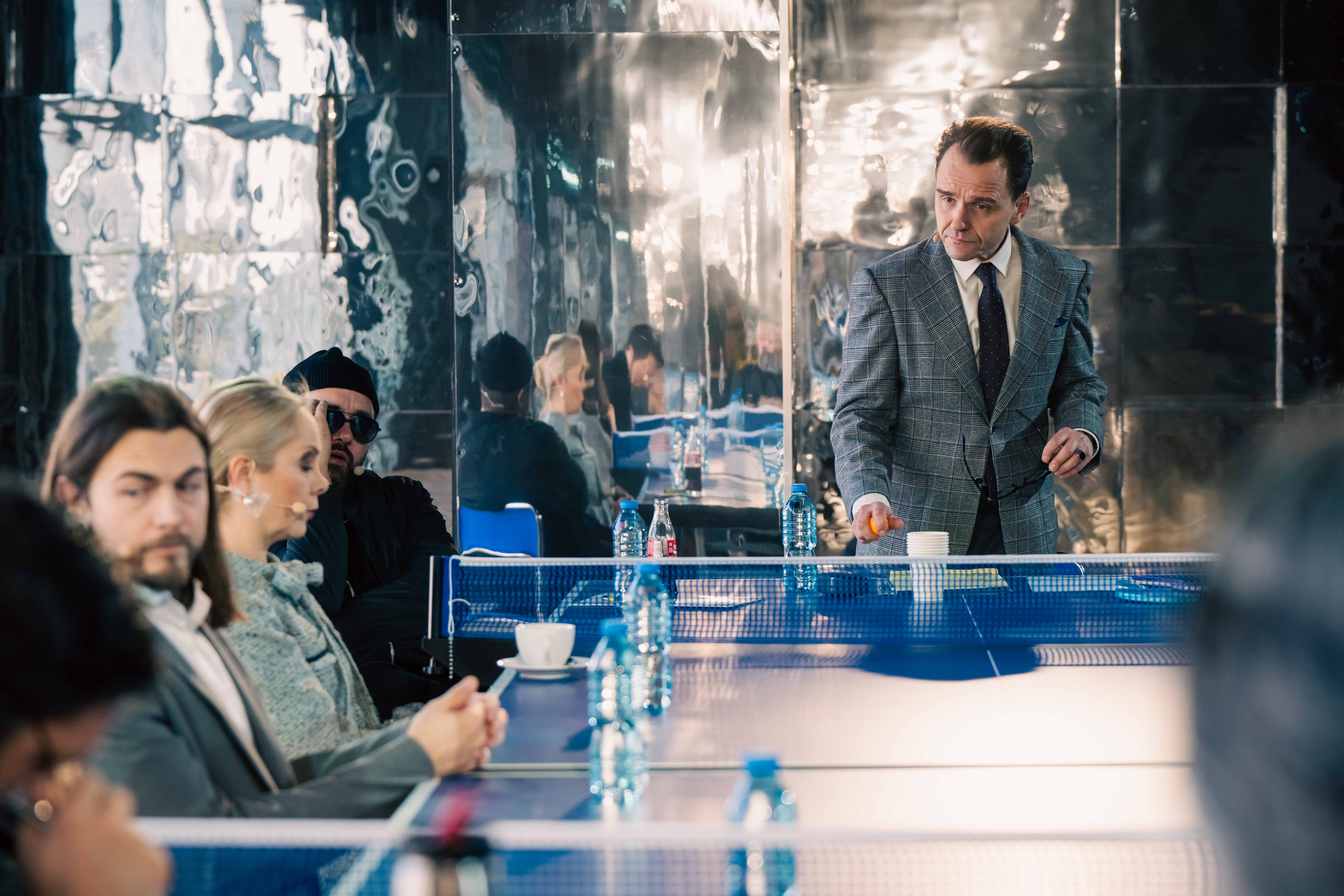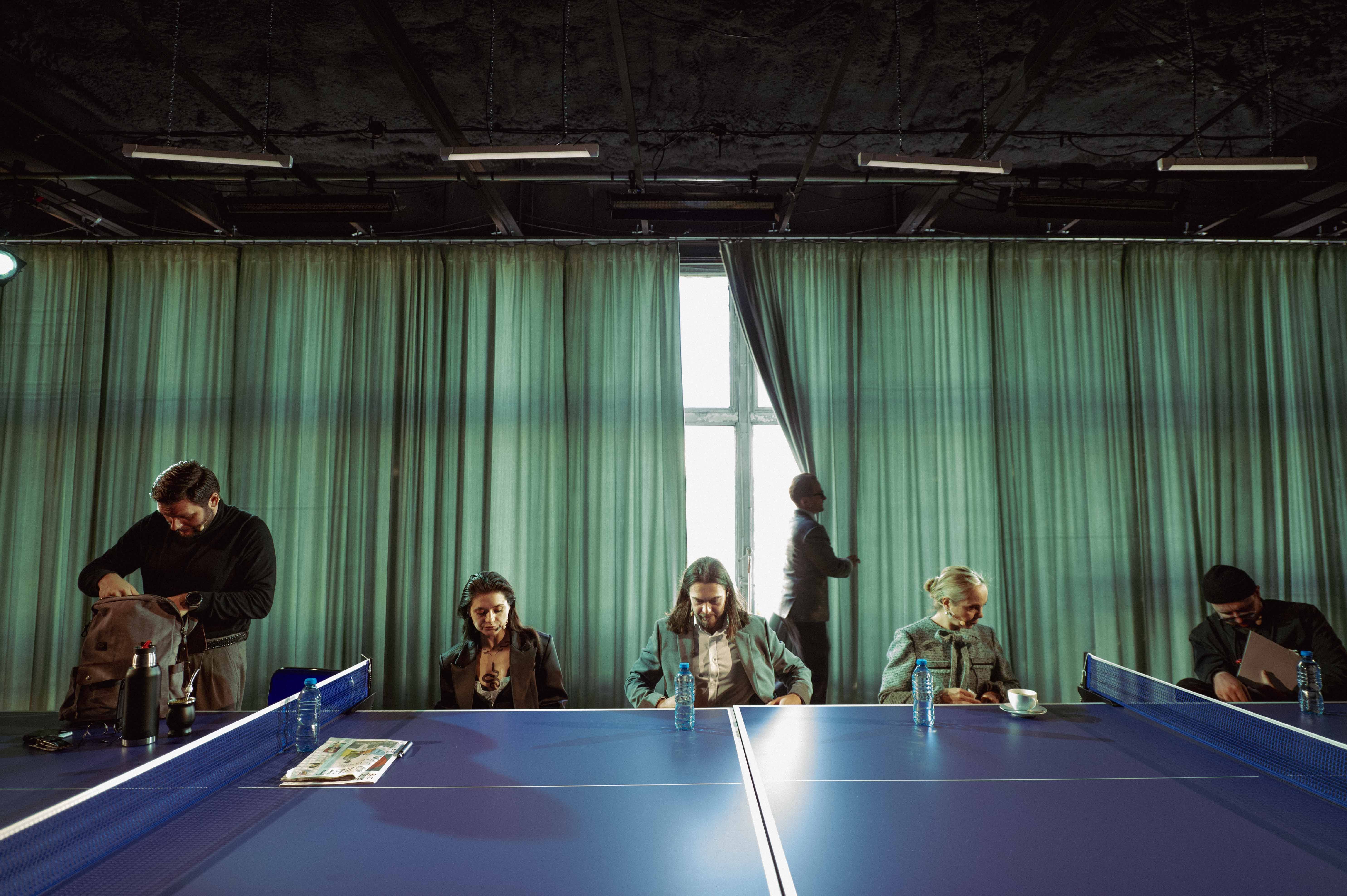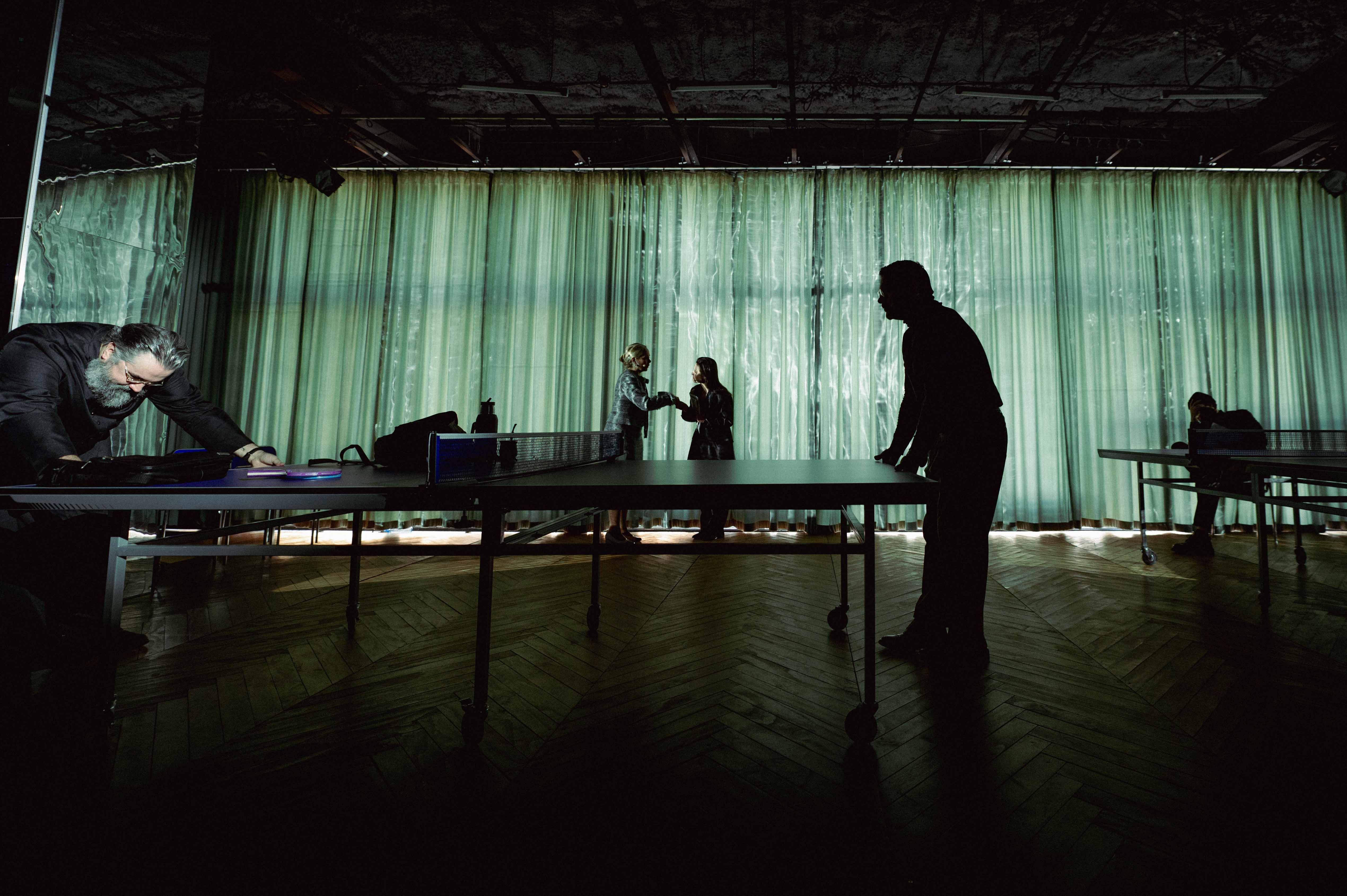Siła spektaklu została osiągnięta dzięki świetnemu aktorstwu. Najbardziej przekonali mnie do siebie Łukasz Kucharzewski jako ks. Konarski oraz Paweł Palcat jako tytułowy prof. Sult. Znakomicie swoją niedużą rolę zagrała też Aleksandra Listwan jako reżyserka teatralna. Całkiem sporo do zagrania miał Bartosz Bulanda jako pisarz, przy czym dla mnie jego postać była zbyt przesadzona. Czy taki człowiek byłby w ogóle sensownym kandydatem do hipotetycznej komisji? Mam wątpliwości... Dobrze wywiązują się z ról Zuza Motorniuk (lekarka), Mateusz Krzyk (psycholog) oraz Jakub Stefaniak (zwykły obywatel). Filozoficzne rozmowy przeplatają etiudy taneczne bohaterów i choć rozumiem, że z jednej strony stanowiły oddech od trudnych rozmów, a z drugiej miały innymi środkami przybliżać nam bohaterów, to trochę nazbyt przedłużały i tak już dość długą historię. Nie mniej same w sobie były znakomite, więc brawo dla autorki choreografii Dominiki Wiak. Bardzo dobrze prezentuje się też scenografia (parkiet, lustra, ping-pongowe stoły przypominające, że to ważna gra) zaprojektowana przez Justynę Elminowską (podobnie jak kostiumy). Świetnym pomysłem okazało się też odsunięcie kotary za aktorami, dzięki czemu przez szyby parterowego budynku Sceny na Piekarach widać było biegnącą tuż za oknami osiedlową uliczkę i spacerujących ludzi. To jeszcze bardziej pogłębiało wrażenie, że spektakl dzieje się tu i teraz, w dzisiejszej Polsce. Ciekawe, że tuż za tymi oknami znajduje się apteka, której neon w kształcie krzyża migał na zielono, zapraszając do wejścia. Z jednej strony krzyż, z drugiej - w świeckiej, marketingowej wręcz poniekąd roli...