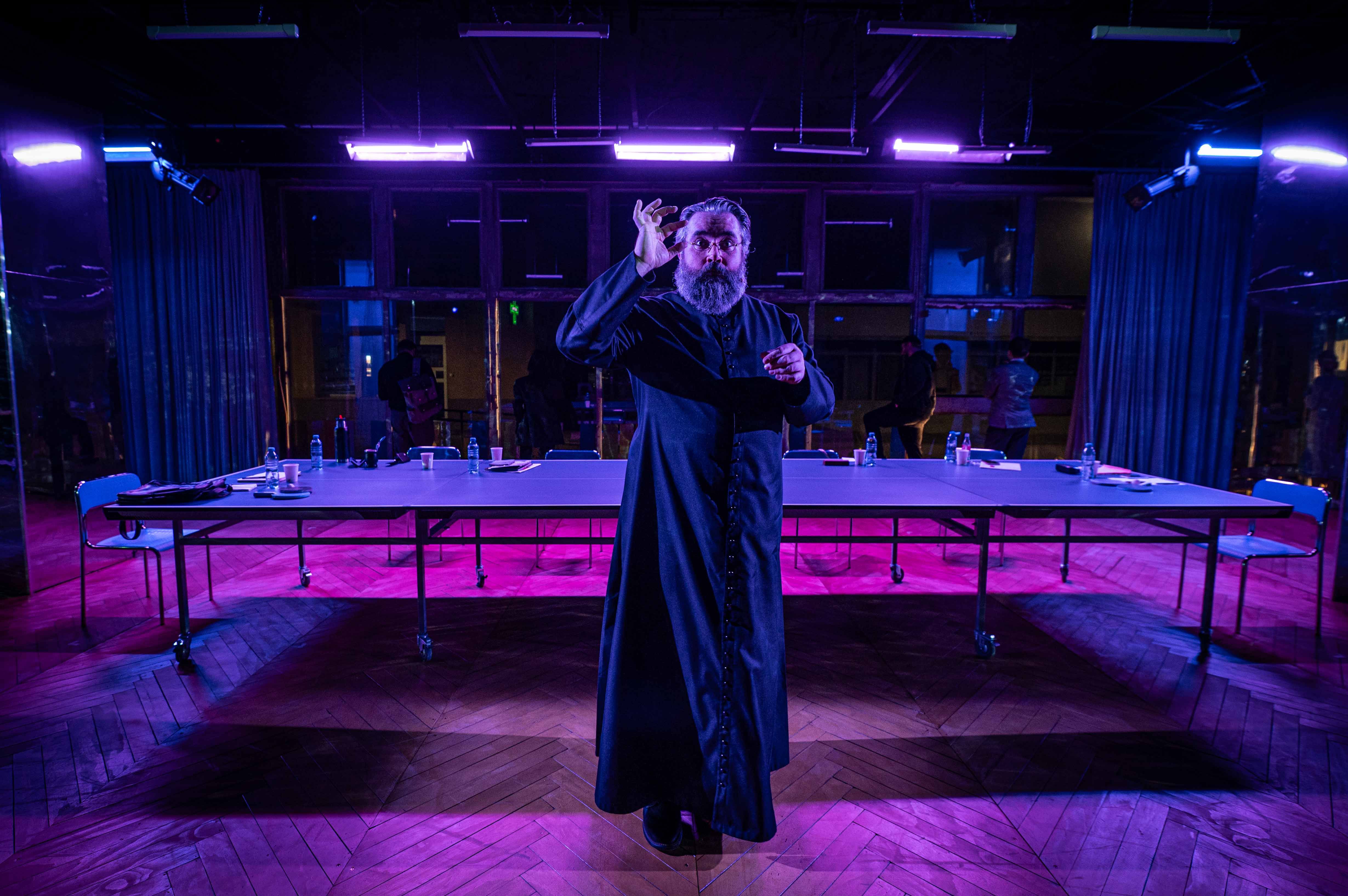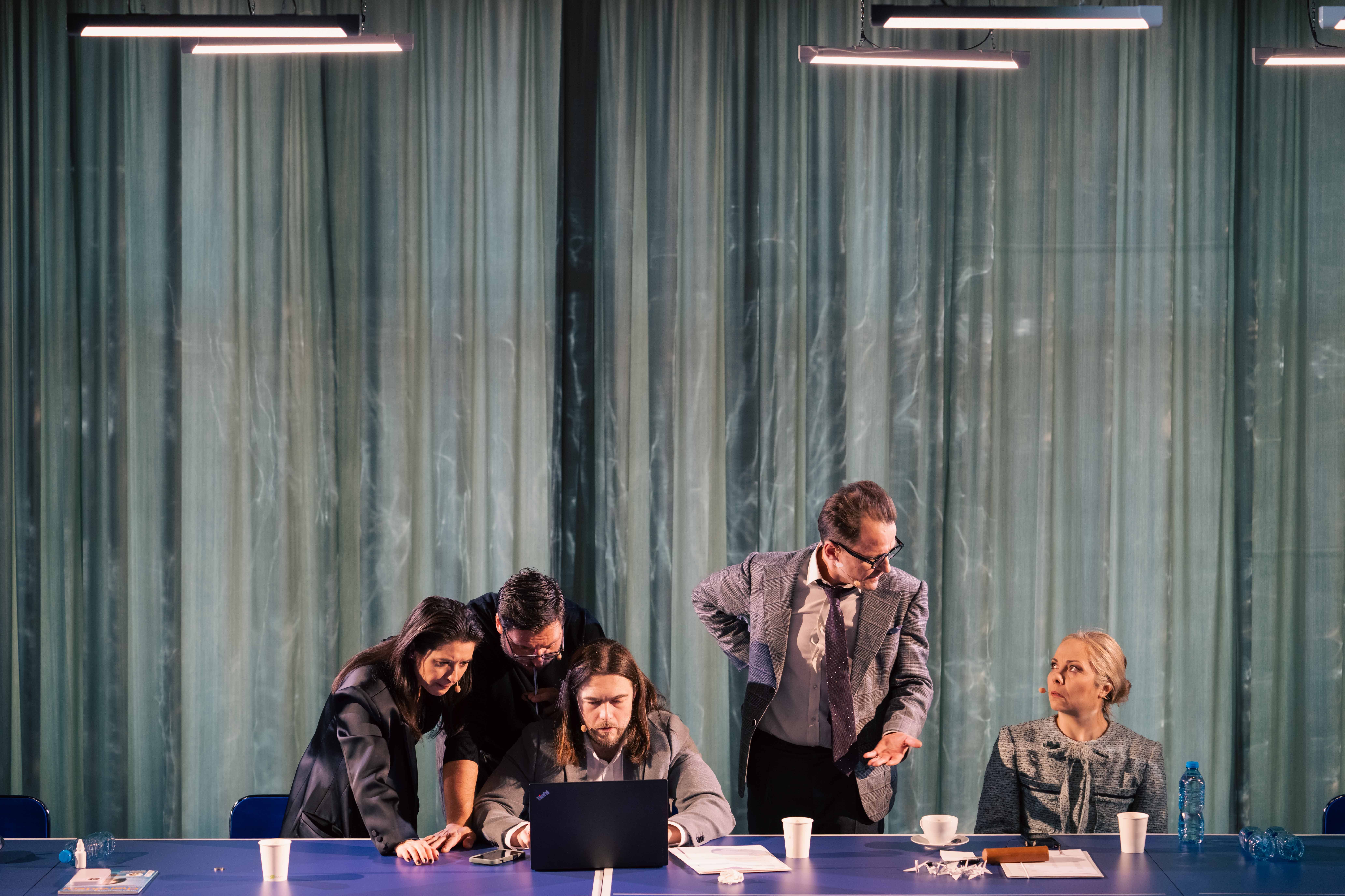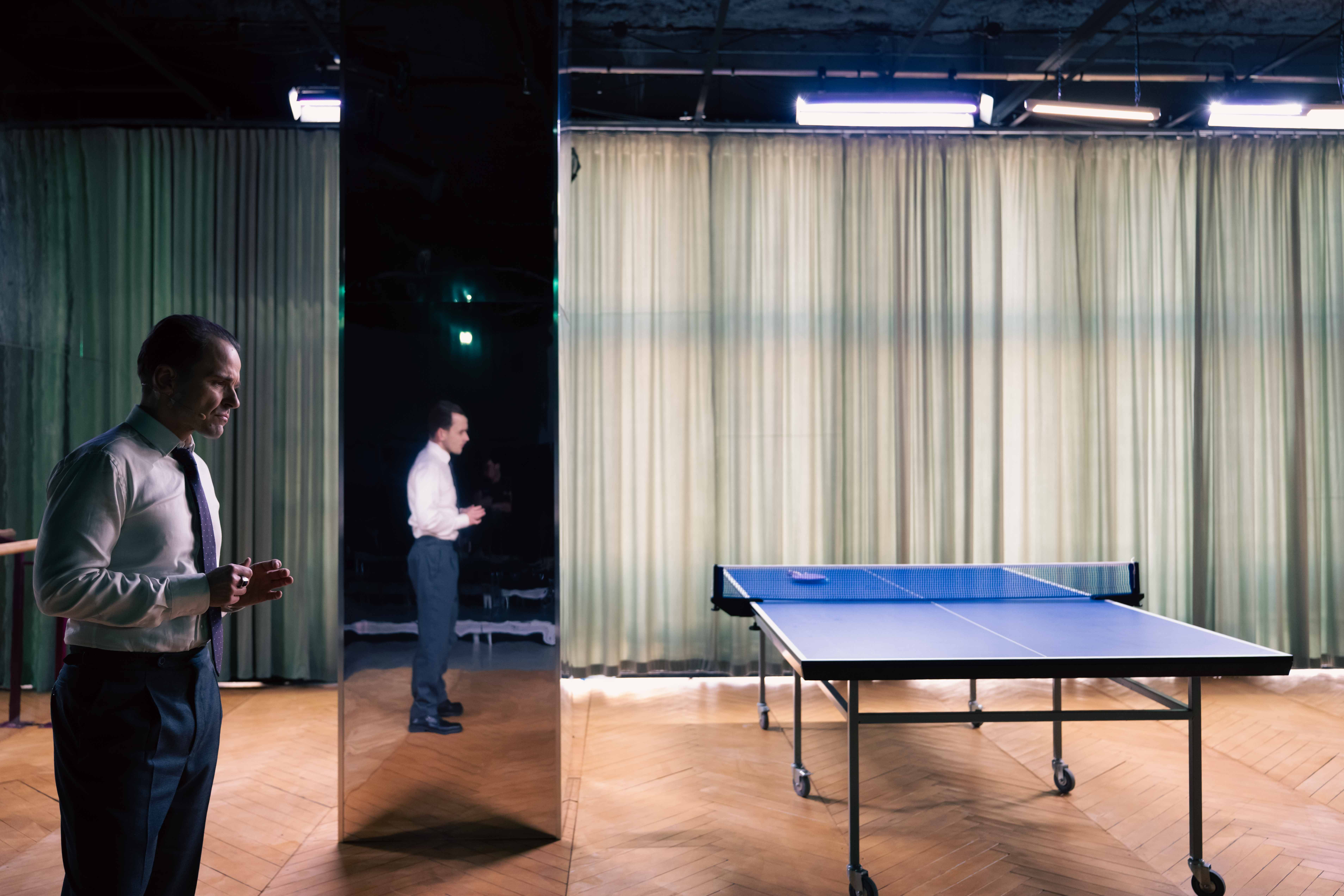 Siła spektaklu została osiągnięta dzięki świetnemu aktorstwu. Najbardziej przekonali mnie do siebie Łukasz Kucharzewski jako ks. Konarski oraz Paweł Palcat jako tytułowy prof. Sult. Znakomicie swoją niedużą rolę zagrała też Aleksandra Listwan jako reżyserka teatralna. Całkiem sporo do zagrania miał Bartosz Bulanda jako pisarz, przy czym dla mnie jego postać była zbyt przesadzona. Czy taki człowiek byłby w ogóle sensownym kandydatem do hipotetycznej komisji? Mam wątpliwości... Dobrze wywiązują się z ról Zuza Motorniuk (lekarka), Mateusz Krzyk (psycholog) oraz Jakub Stefaniak (zwykły obywatel). Filozoficzne rozmowy przeplatają etiudy taneczne bohaterów i choć rozumiem, że z jednej strony stanowiły oddech od trudnych rozmów, a z drugiej miały innymi środkami przybliżać nam bohaterów, to trochę nazbyt przedłużały i tak już dość długą historię. Nie mniej same w sobie były znakomite, więc brawo dla autorki choreografii Dominiki Wiak. Bardzo dobrze prezentuje się też scenografia (parkiet, lustra, ping-pongowe stoły przypominające, że to ważna gra) zaprojektowana przez Justynę Elminowską (podobnie jak kostiumy). Świetnym pomysłem okazało się też odsunięcie kotary za aktorami, dzięki czemu przez szyby parterowego budynku Sceny na Piekarach widać było biegnącą tuż za oknami osiedlową uliczkę i spacerujących ludzi. To jeszcze bardziej pogłębiało wrażenie, że spektakl dzieje się tu i teraz, w dzisiejszej Polsce. Ciekawe, że tuż za tymi oknami znajduje się apteka, której neon w kształcie krzyża migał na zielono, zapraszając do wejścia. Z jednej strony krzyż, z drugiej - w świeckiej, marketingowej wręcz poniekąd roli...