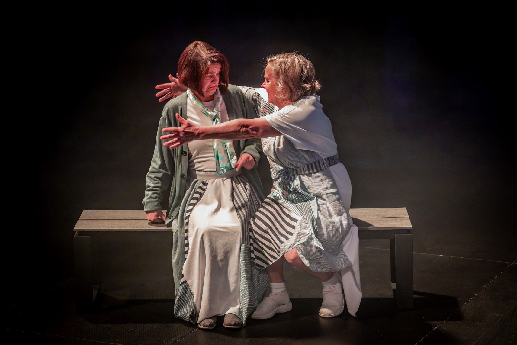 Spektakl powstał w wyniku współpracy krakowskiego Teatru KTO (przez który zostałem zaproszony), katowickiego Stowarzyszenia Nowy Teatr oraz tamtejszego Domu Kultury Witosa i jest realizacją projektu "Bieda, której nie widać" dofinansowanego ze środków Ministra Kultury i Dziedzictwa Narodowego, pochodzących z Funduszu Promocji Kultury. Opowiada o starości. I jeśli właśnie odechciało Wam się czytać tej opinii, to przyczyniacie się tym samym do jednej z senioralnych bied - niewidzialności, spychania na margines, wypychania poza społeczny nawias, kształtowany przez poczucie instagramowej estetyki. Właśnie dlatego ta piękna, wzruszająca i poruszająca historia powinna zostać nagłośniona. Oto grupa seniorów nie przebrała się w kiczowaty kostium, wystawiając baśnie Brzechwy czy klasykę spod znaku Mickiewicza lub Szekspira. Oni odważyli się opowiedzieć o sobie i swoich bolączkach w sposób głęboko teatralny. Przedstawiona historia (autor tego mądrego i ciekawego scenariusza to Grzegorz Górny) jest patchworkowa, niczym cudowne kostiumy, jakie noszą aktorzy (wspaniałe projekty Szymona Kota) i opowiada o senioralnych problemach z humorem i mądrością, a momentami inscenizacyjną brawurą, nieczęstą w teatrach senioralnych. Nie byłem na próbach, ale mam głębokie poczucie, że reżyserujący spektakl Sławomir Szczurek potraktował swoich aktorów bardzo serio i efekty tego są znakomite. Kolejne historie osnute są wokół ośrodka, do którego trafiają seniorzy, których obniżona jakość życia kłuje w oczy innych. Muszą działać, muszą się wykazać, muszą brać udział w kolejnych egzaminach, zajęciach i teleturniejach. Poczucie odrealnienia tej wizji potęgują reżyserskie pomysły, ale widzimy tu wiele głębokich prawd. W tym te, których na co dzień nie zauważamy. No bo czego może brakować seniorce, która ma pieniądze i zdrowie? Jak senior może odnaleźć się w dzisiejszym korpoświecie? Czemu se*s seniorów to temat tabu? Jak znosić starość, gdy wymaga ona cały czas opieki nad kimś jeszcze starszym (wstrząsająca scena relacji z matką). Jasne, że te problemy pojawiały się już w teatrze, literaturze i filmie, ale ich sensowna kompilacja w wykonaniu tych, którzy borykają się z podobnymi problemami robi wrażenie.
