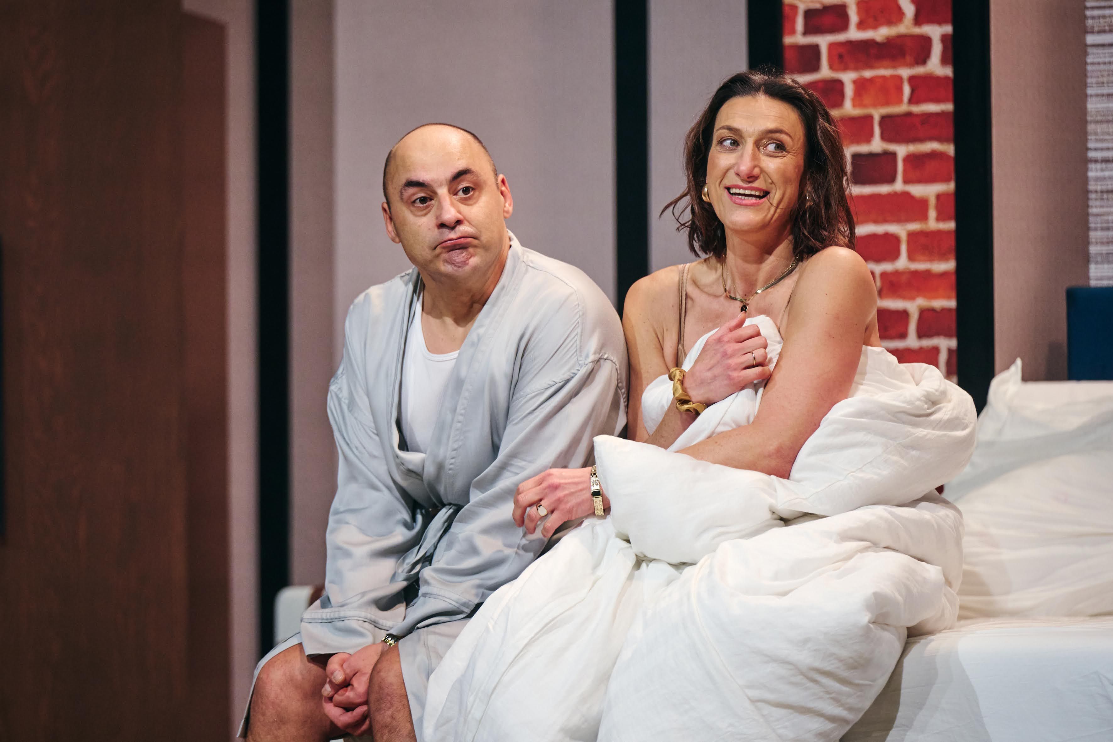 Małżeństwo w separacji (Aleksandra Maj i Adam Krawczuk) wyrusza z rodzinnych Niemiec, by sprzedać swój dom w Hiszpanii. Zatrzymują się, by odpocząć w jakimś francuskim miasteczku, jednak w podłym, remontowanym hotelu, dostępny jest ostatni pokój z jednym łóżkiem i niedziałającym prysznicem w łazience, którą to muszą w dodatku współdzielić z lokatorami z pokoju obok (Klaudia Cygoń-Majchrowska i Kornel Sadowski). Pikanterii sprawie dodaje fakt, że ona jest znaną z małżeńskich porad celebrytką (której autorytet mógłby runąć, gdyby rozniosła się wieść o końcu związku), a para z sąsiedniego pokoju - wiernymi fanami jej programów. Pozostaje dla mnie zagadką, czemu autor i reżyser nie zdecydował się zrobić z bohaterów Polaków - ich narodowość niewiele zmienia, za to wprowadza pewne zamieszanie w tekście. Mam też problem z piątym bohaterem - hotelowym konserwatorem (Mariusz Galilejczyk), którego postać i zachowanie są niewiarygodne nawet jak na standardy farsowe (i jest to zarzut do scenariusza i reżyserii, a nie do aktora). Całość trwająca (z przerwą) 2h i 20 minut spokojnie mogłaby bez żadnej straty zostać okrojona do jakieś 1,5 h czy 1 h 45 minut.