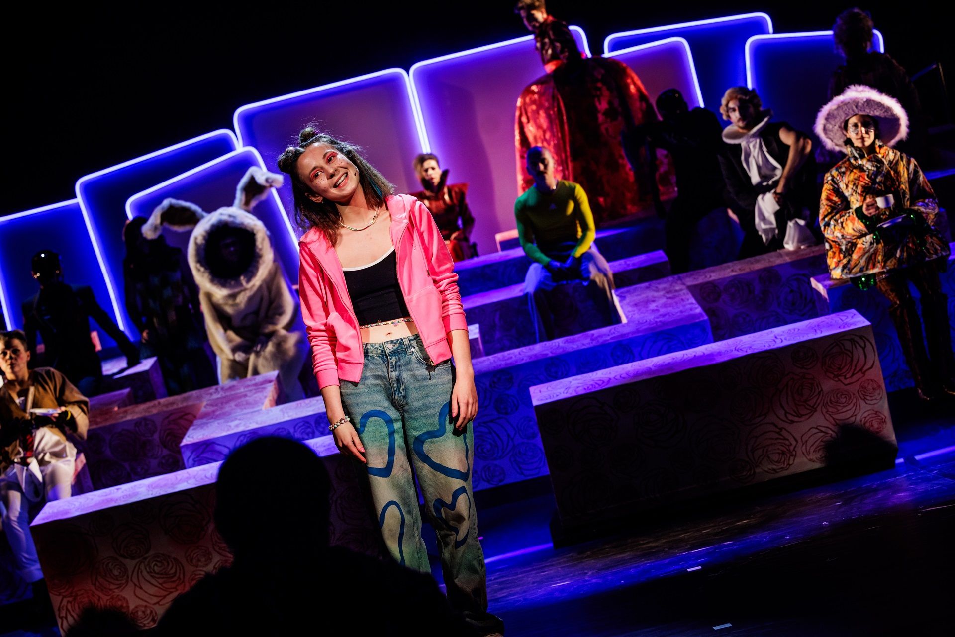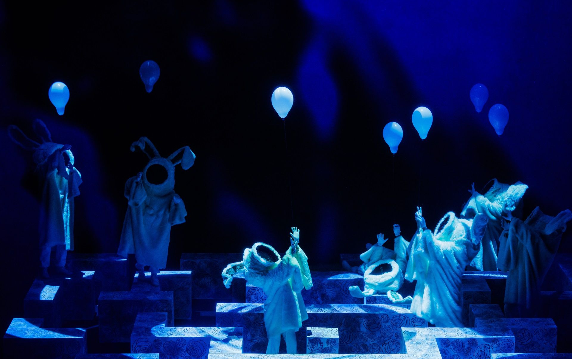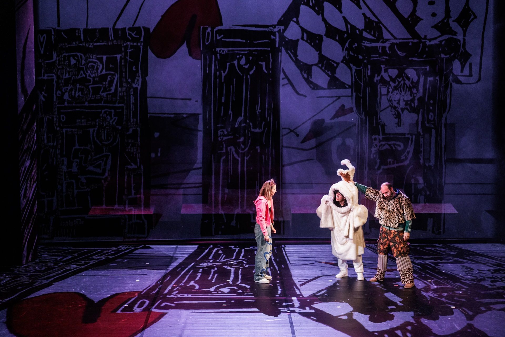Piszę królików, bo tych białych jest tu całkiem sporo i towarzyszą widzom już od foyer. Gdy zaczynają biegać po scenie, a do uszu dochodzą do nas dziwne kocie teksty miałem nieodparte wrażenie, że w tym szaleństwie jest metoda i chcę go oglądać więcej. Niestety, jak wspominałem potem odhaczamy już tylko kolejne lepsze lub gorsze sceny z bohaterami, a całość przedzielają piosenki. Brakuje mi tu bardzo jakichś łączników tych scen, płynnego przechodzenia w kolejne epizody. I choć są one dobre i mądre (może nieco zbyt intelektualne, no ale w końcu za tekst odpowiadał Michał Rusinek; muzyka jest autorstwa Rafała Matuszaka), to miałem wrażenie, że średnio pasują do tej opowieści i nadając jej przewidywalny rytm jednocześnie ją spowalniają. Zabrakło mi też jakiegoś większego wokalnego popisu zbiorowego, bowiem w zasadzie ograniczono się do śpiewającej Alicji.