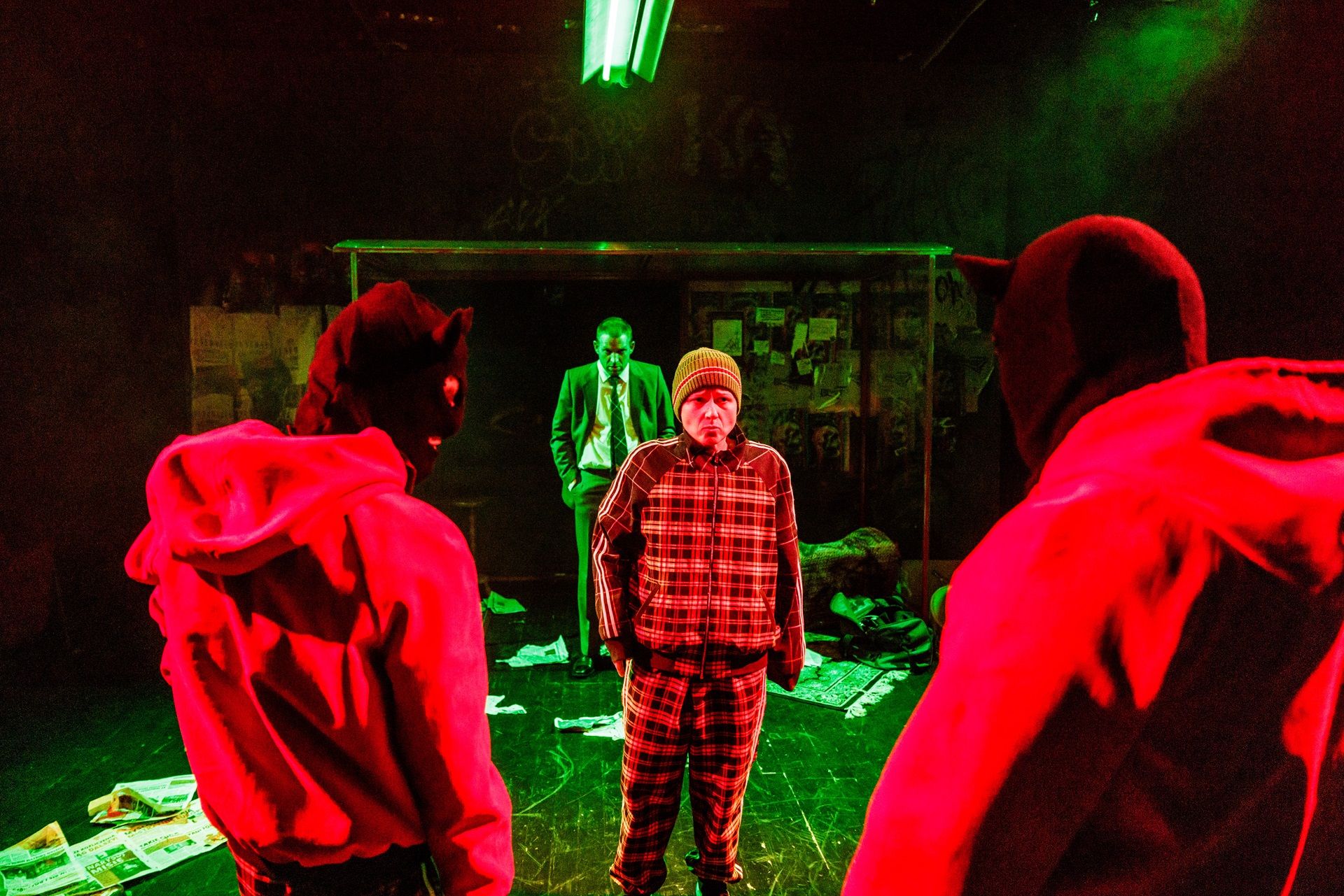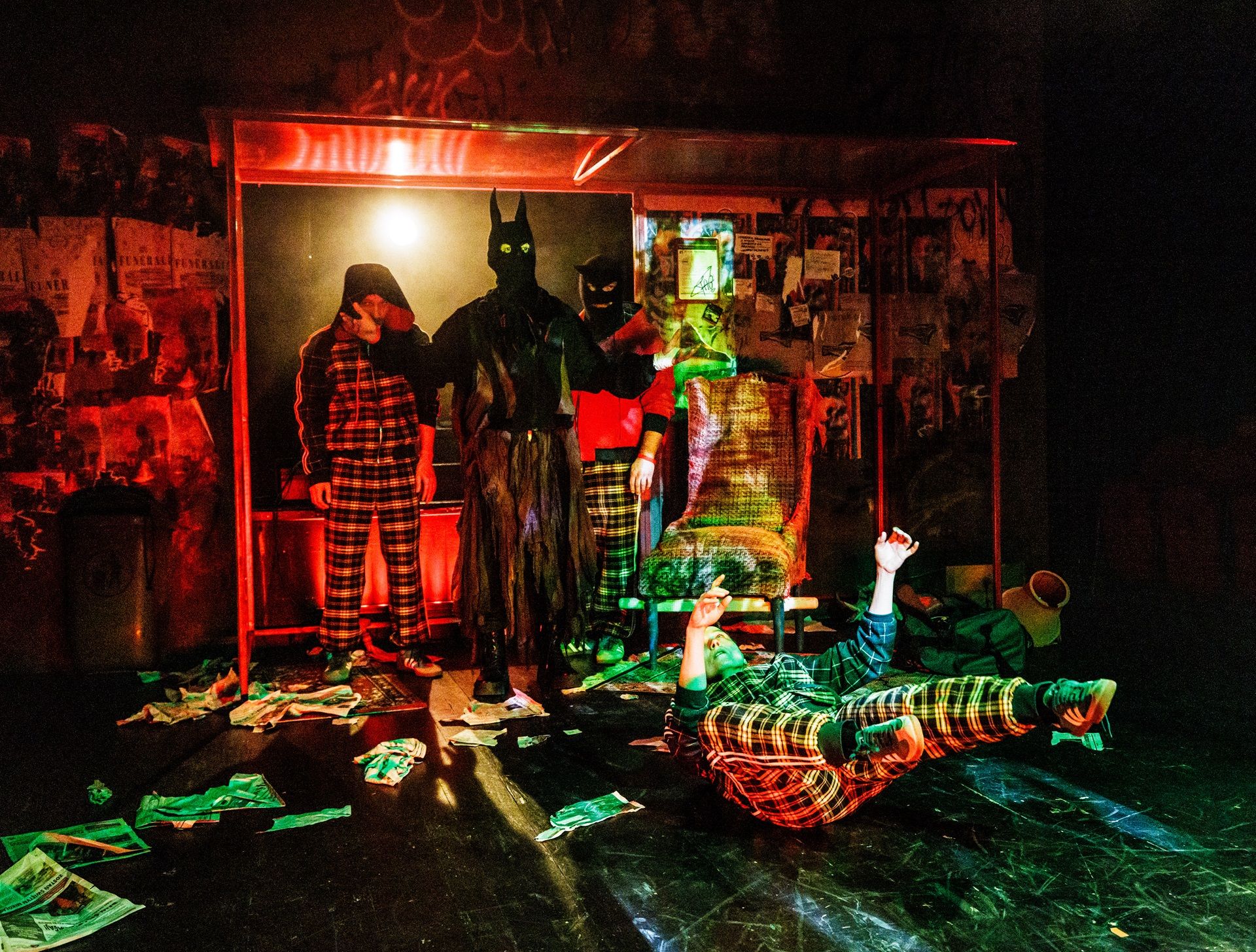 Pochwalić trzeba ruch sceniczny i choreografię, za które odpowiedzialni byli Patrycja Paczos, Aleksandra Radkowska i Hanna Stawczyk oraz muzykę Jakuba Adamiaka. Największe zastrzeżenia w spektaklu mam do jego oprawy plastycznej (scenografia i kostiumy to dzieło Soni Singsavang). Choć dekoracja nie wygląda źle to zastanawiam się nad jej konceptem: czemu w miejscu akcji jest aż tak brzydko i brudno... Wydaje mi się to kolejnym utrwalaniem negatywnych stereotypów na temat Katowic i Śląska. Domyślam się, że miało to wzmocnić obraz kontrastu teraźniejszości z idealizowanym dzieciństwem, nie mniej nieco mnie ta wizja uwiera (zwłaszcza w kontekście spektakli granych poza Śląskiem). Dodatkowo, choć pomysłowe dwustronne kurtki sprawdziły się świetnie, to diabelskie maski i strój Feriego Acza zupełnie mnie nie przekonały.