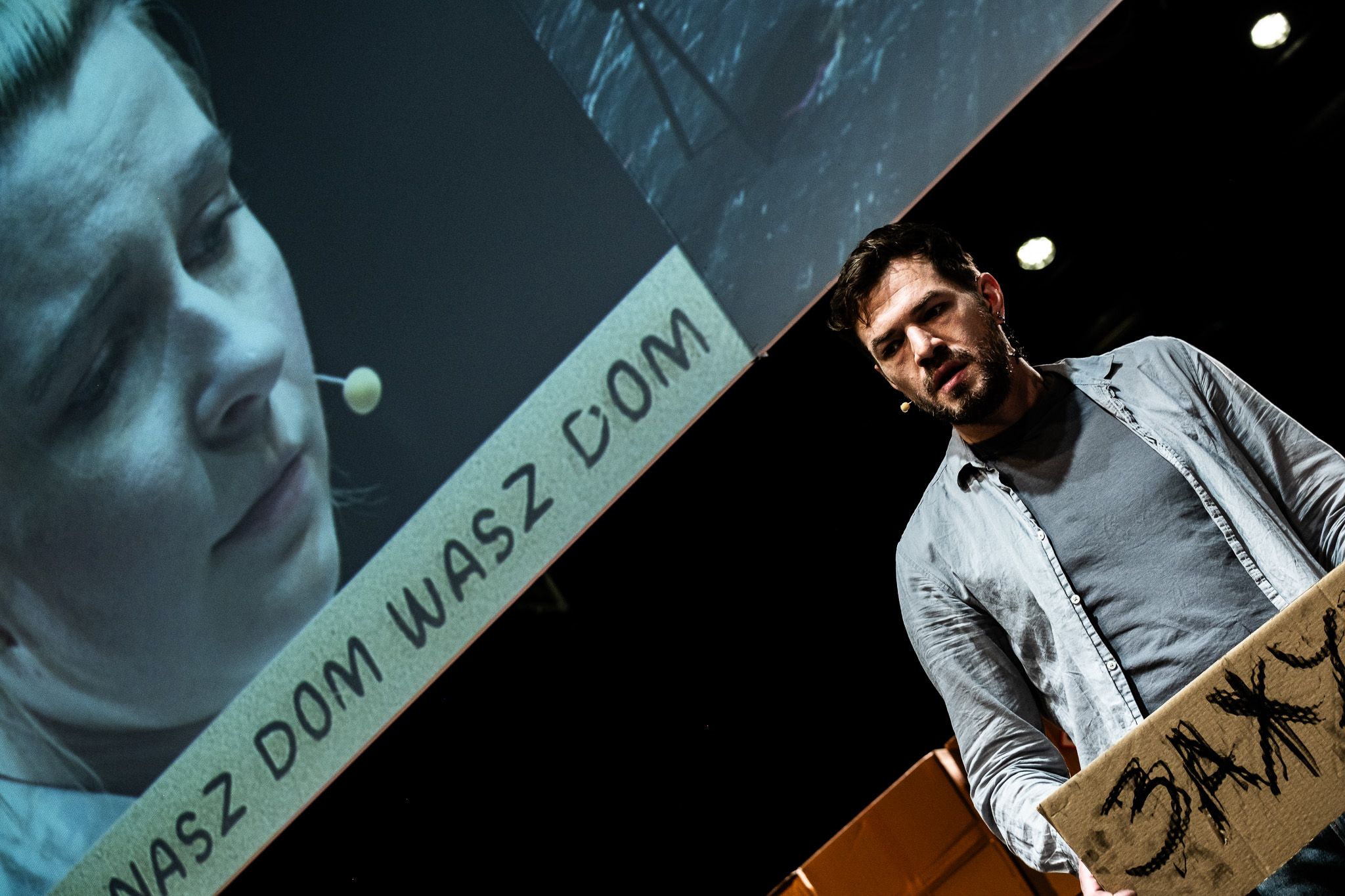 Siedzę na widowni wrocławskiego teatru i myślę o Zamenhofie, słuchając płynących ze sceny innych historii z Podlasia - o powojennym mordowaniu prawosławnych przez polskich partyzantów, o języku białoruskim czy choćby wschodnim akcencie w polskiej mowie, który wyzwala agresję. I jak zawsze w takich przypadkach szukam odpowiedzi na pytanie o źródło konfliktu i nienawiści między nami. Przygniatają mnie historie takie jak ta polityczna antyutopia, dziejąca się w nieodległej przyszłości w przededniu wyborów do Parlamentu Europejskiego, w których ścierają się wizje ludzi mówiących tym samym językiem, a jednocześnie kompletnie się nie rozumiejących, bowiem słowa są dla nich jedynie zasłoną. I to jest cenna lekcja - w polityczno-medialnym sojuszu nie ma takich wartości jak prawda, dobro. Są tylko interesy. Obserwujemy lewicową panią polityk grającą uchodźcami, głoszącą banalne komunały, galopującą poglądami w odklejenie i absurd oraz drugą stronę barykady - prawicowy ekstremizm (dla autorów bardziej mroczny i złowieszczy, bo podszyty historycznymi zaszłościami, obarczony mordami i terrorem). Wszystko dzieje się w oku kamery i przy mikrofonie telewizyjnego programu "Nasz dom, wasz dom". Politycy mający na służbie media i migrantów jako zakładników, historia, która może się powtarzać i jeśli czegoś nas uczy to tego, że niestety większość z nas nie odrabia tych lekcji powtarzając te same błędy.
