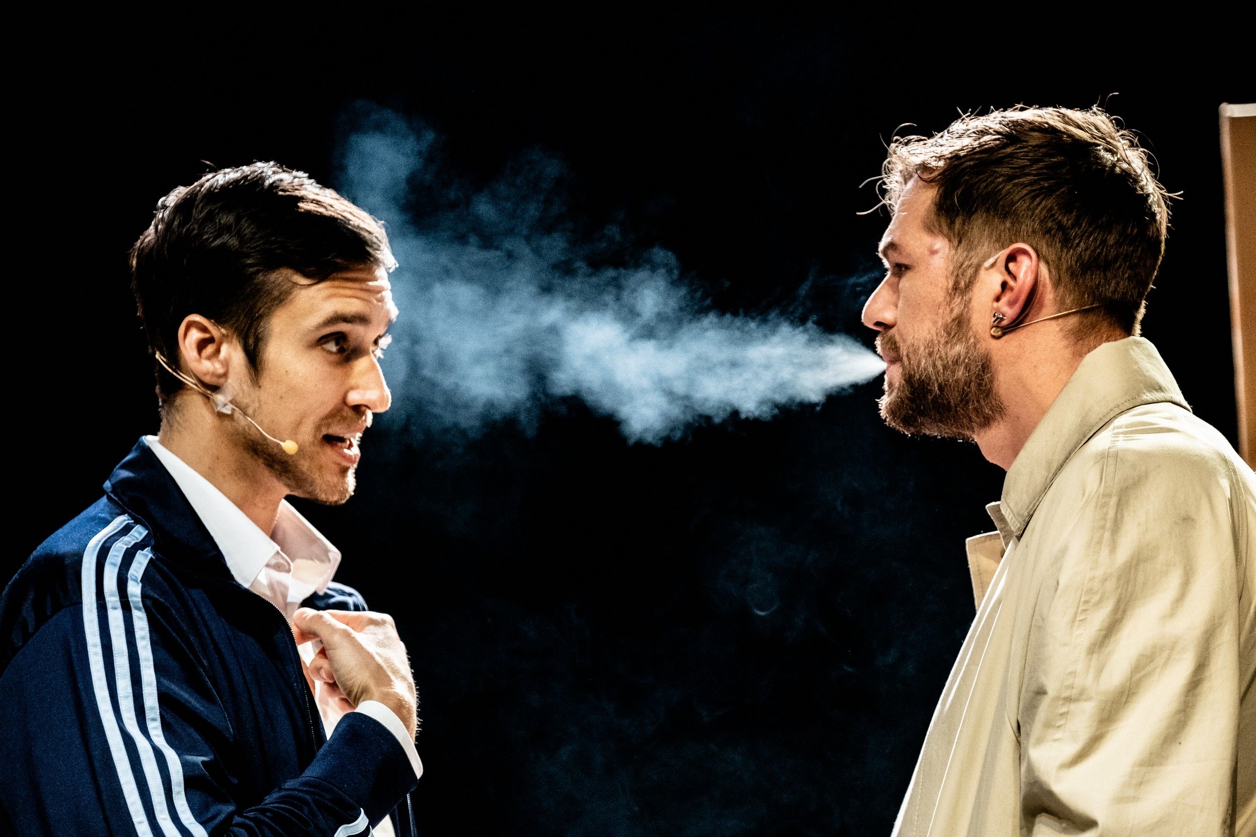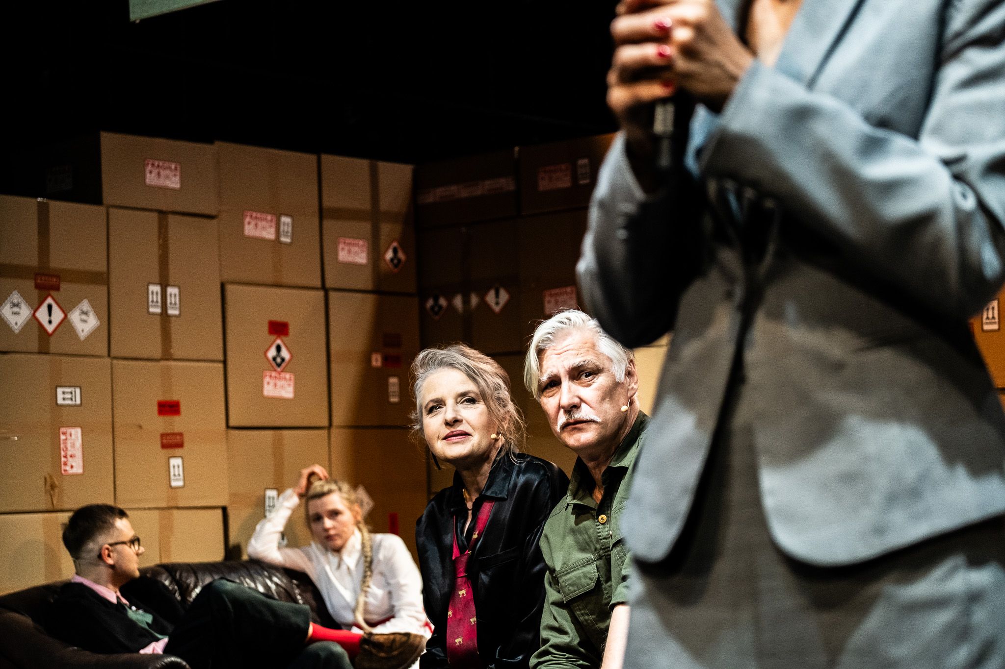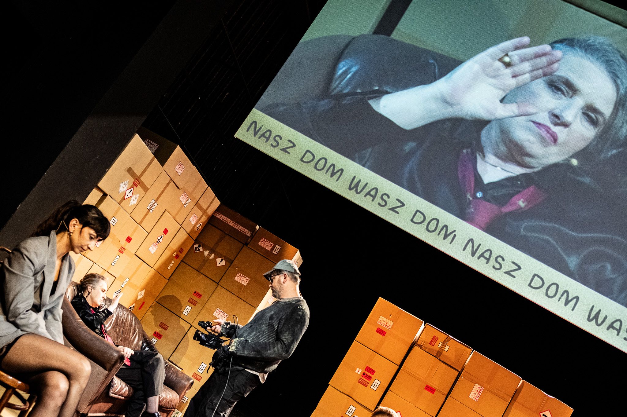 W pamięć zapada też aktorstwo. Najbardziej zaczarował mnie Dominik Smaruj, który pięknie potrafił przejść od cynizmu, do niemal czułości w rozgrywającej się na zapleczu sceny, którą śledzimy okiem kamery. Jego napięcie od początku wydaje się groźne, budzi respekt i wiemy, że z czasem ta naprężona struna musi pęknąć, uderzając wszystkich wokół. Świetny jako wujek Mieczysław jest Mariusz Drężek, aż szkoda, że mamy go tylko w drugiej części spektaklu. Wspaniale ze swojej roli wywiązuje się Kiryl Masheka (białoruski uchodźca polityczny), a jego polemiki z granym przez Smaruja Janem Marią (komu zawdzięczamy polski Wrocław? Ile słów w języku białoruskim określa różne odmiany smutku?) mocno zapadają w pamięć. W roli dziennikarki bardzo dobrze wypada Marta Ojrzyńska, podobnie w roli polityczki Ewelina Paszke-Lowitzsch. Niewykorzystany wydaje się potencjał Roberta Majewskiego (świetna scena z awarią kamery) oraz grających migrantów Magdaleny Taranta i Tomasza Taranta.